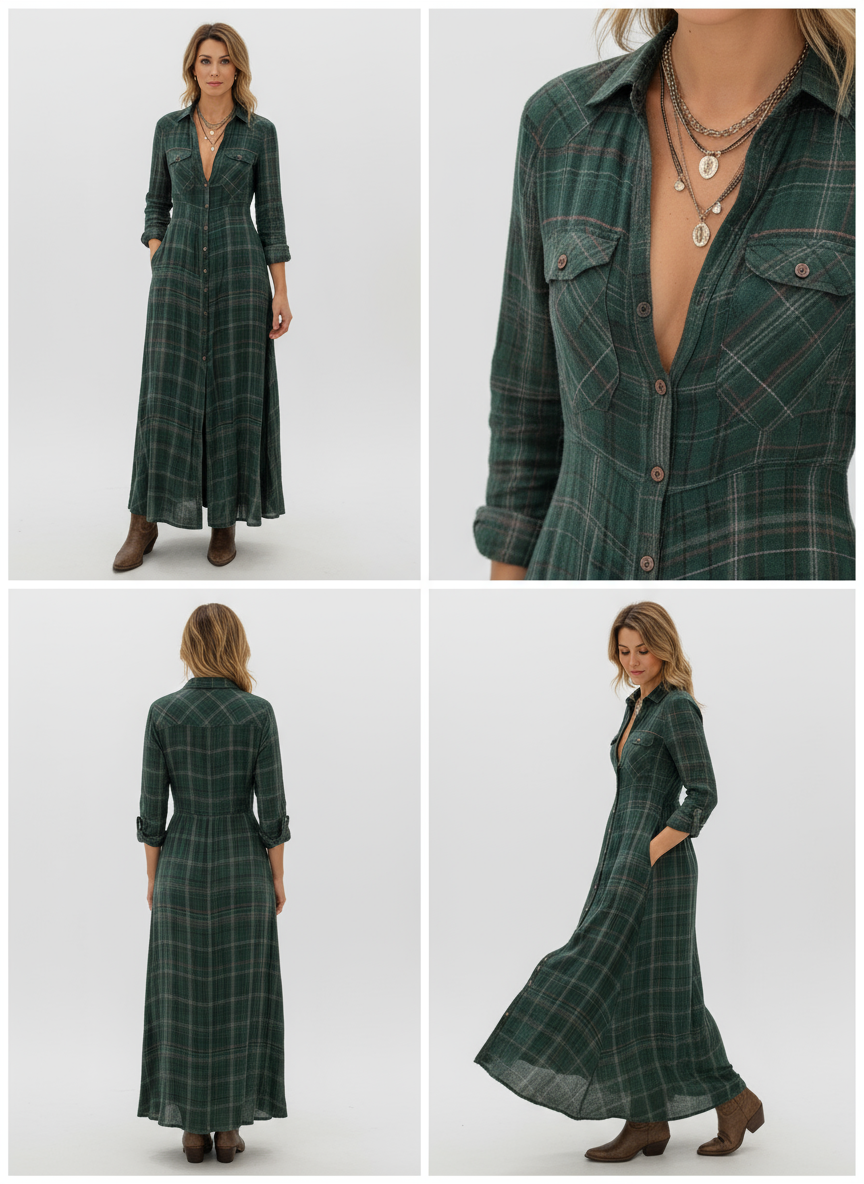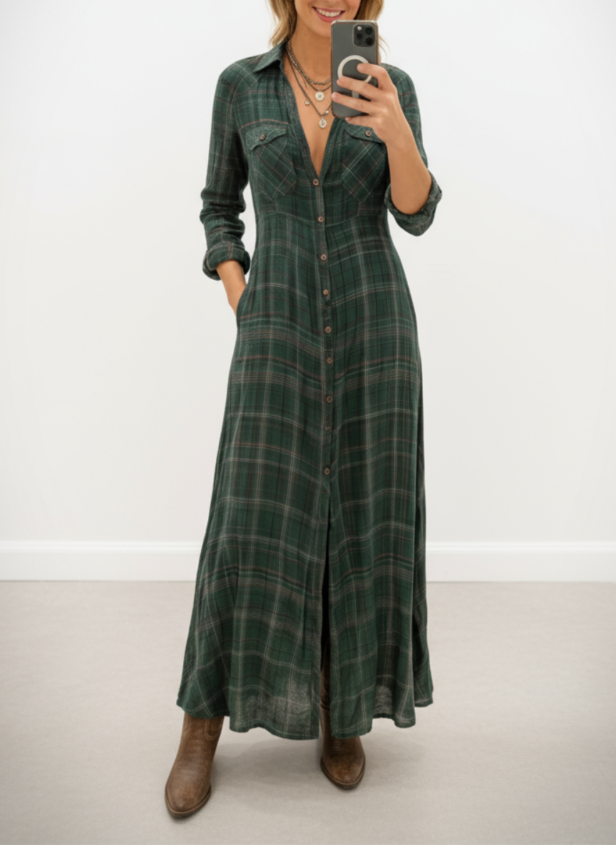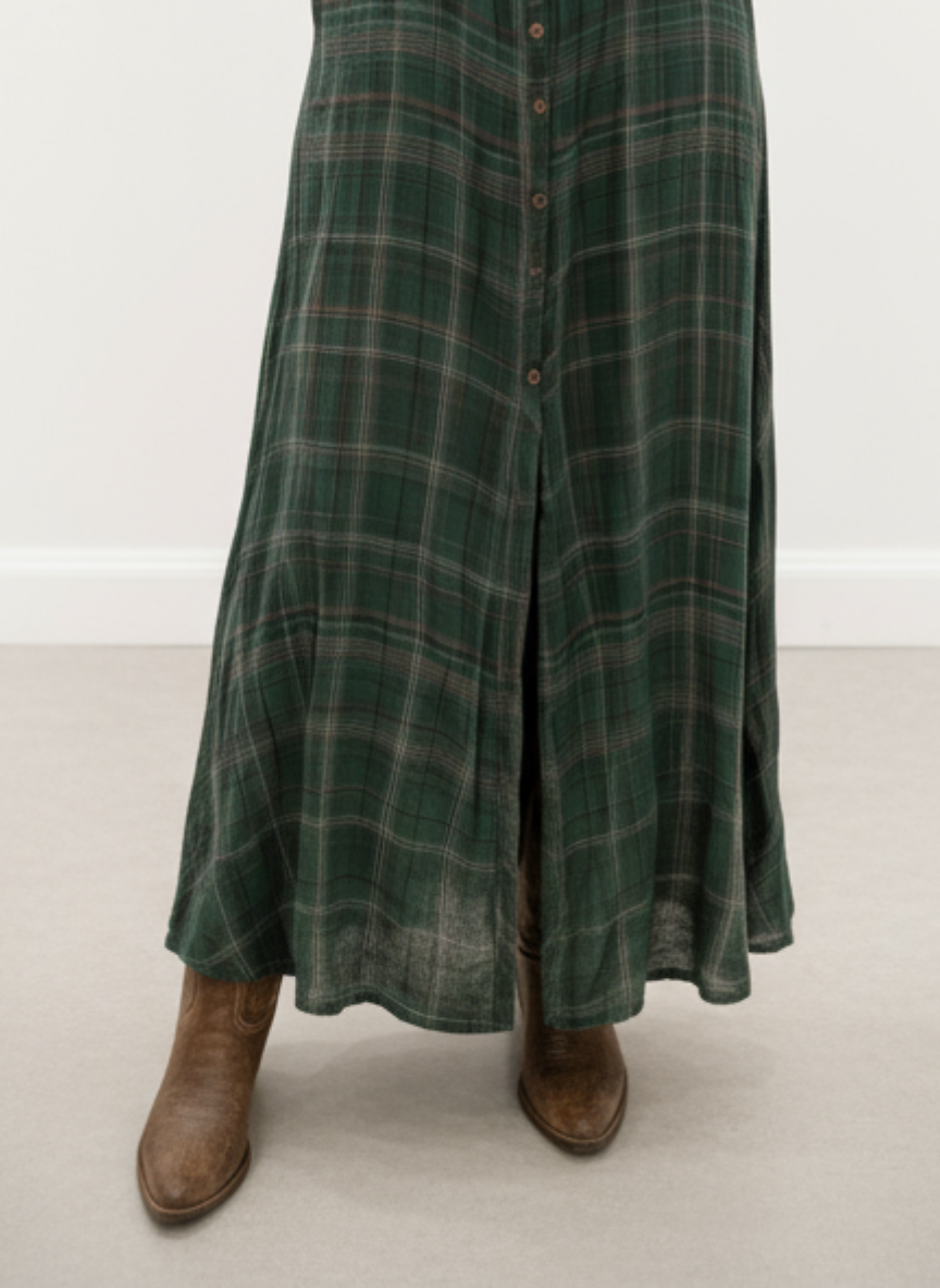 KARINA | VESTIDO LARGO A CUADROS VERDE