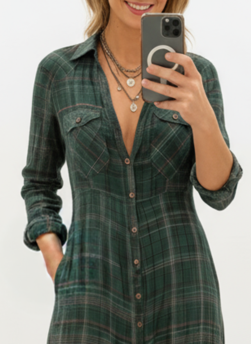 Dale un toque de distinción a tu armario con este vestido camisero largo de botonadura sencilla con solapa a cuadros para mujer. Combinando un estilo camisero clásico con un largo maxi, este vestido es perfecto tanto para salidas informales como para eventos elegantes.