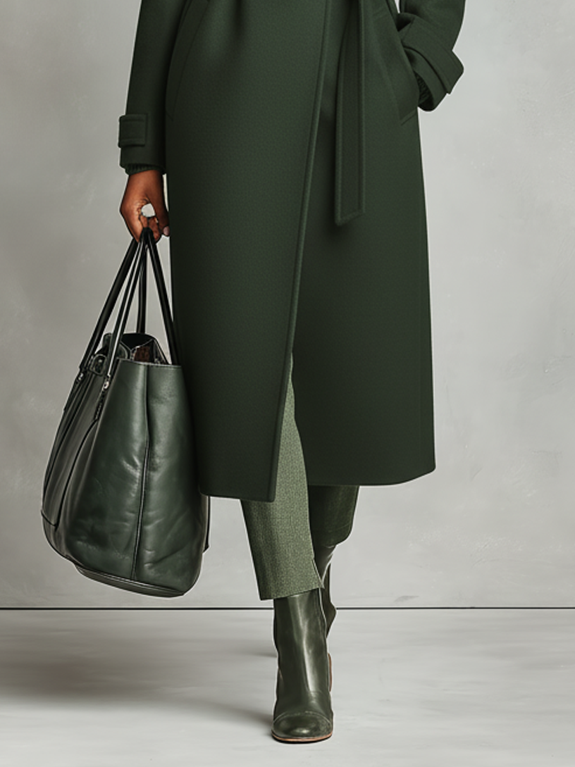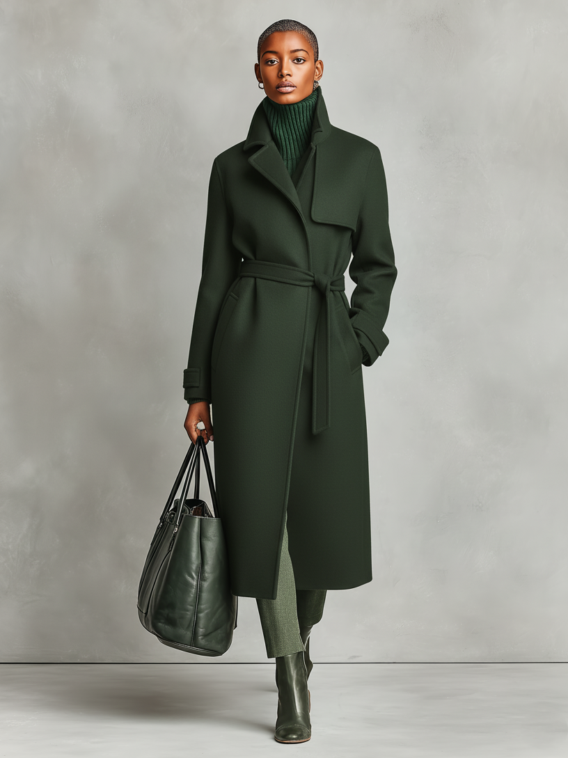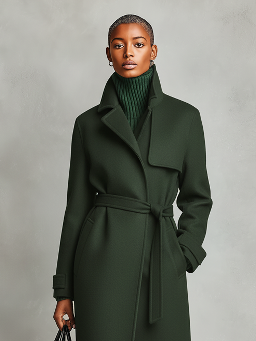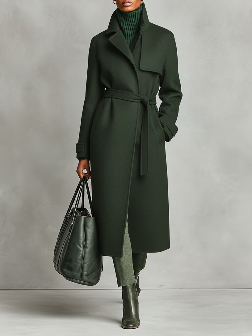 Abrigo de Mujer de Mezcla de Lana con Solapa y Cinturón, Largo Medio